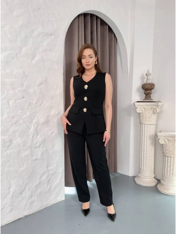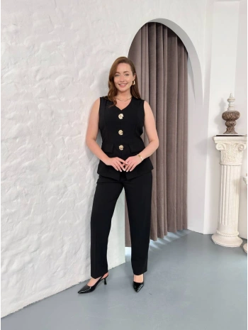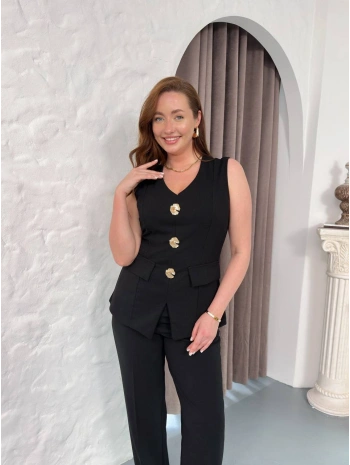 Kadın Kısa Kollu Beli Lastikli Yırtmaçlı Rahat Kalıp Ikili Kaşkorse Takım