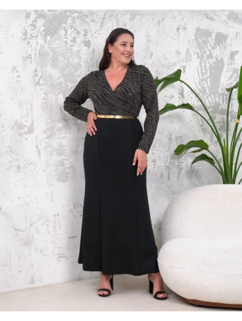 Büyük Beden Kruvaze Yaka Yırtmaçlı Yarım Pullu Tam Boy Abiye Elbise
