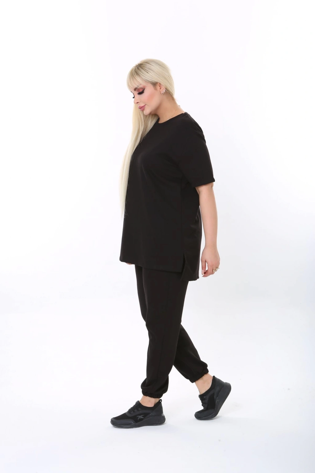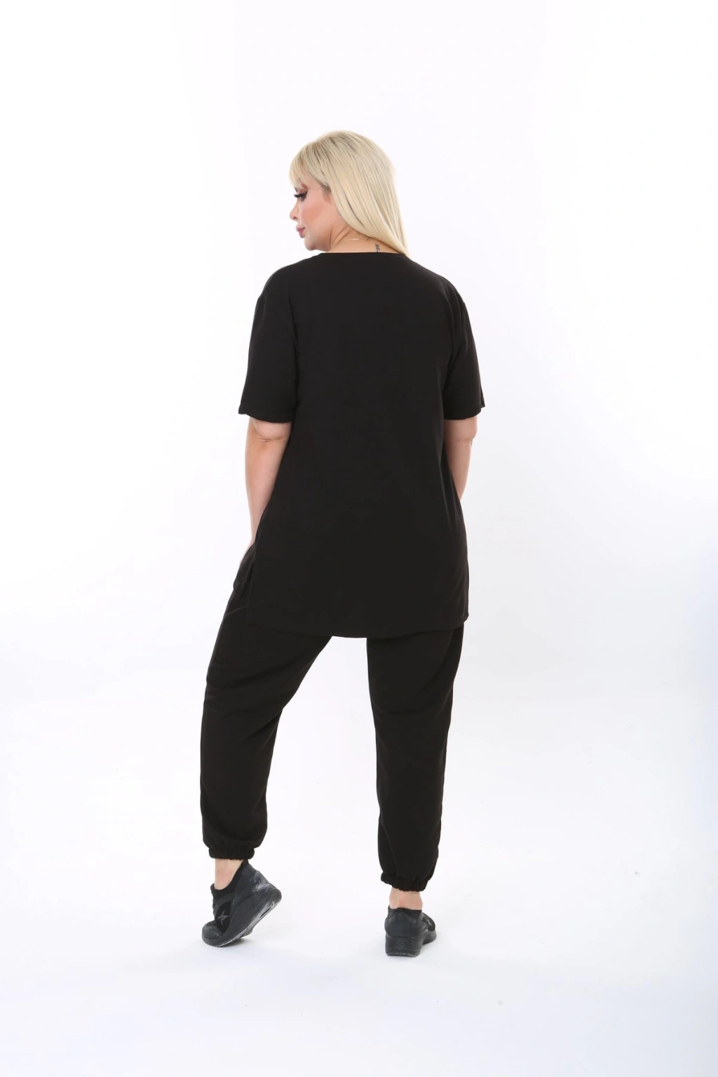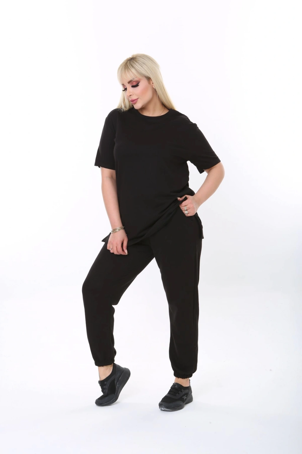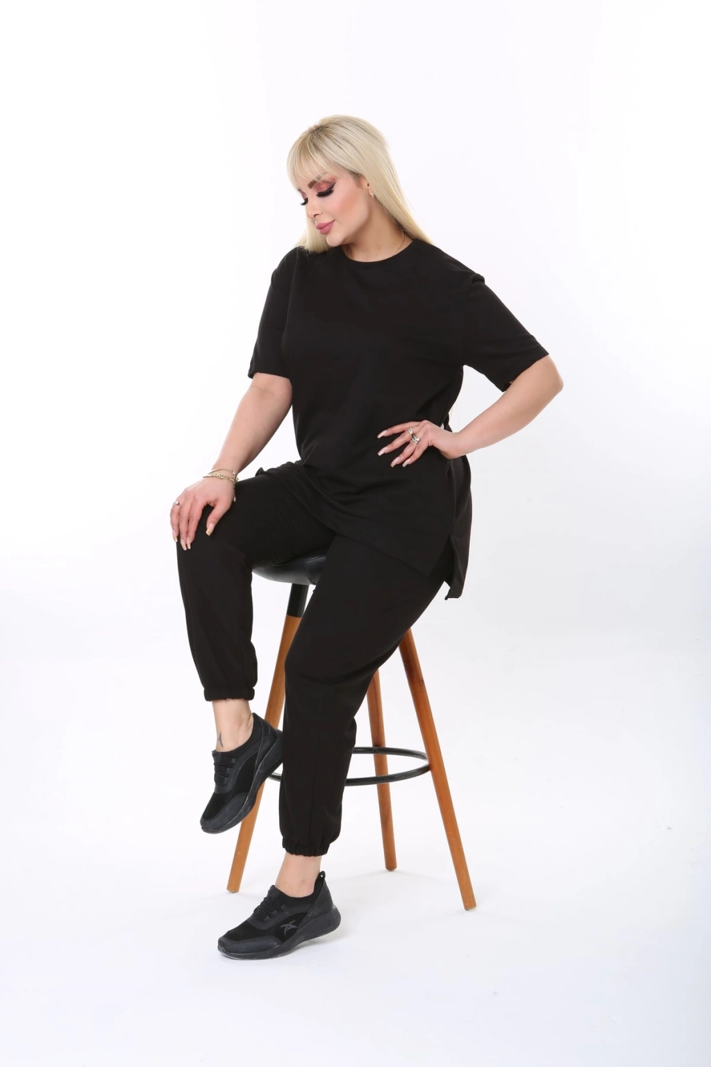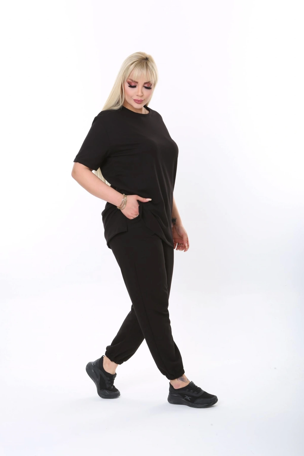 Büyük Beden Düz Renk Kısa Kollu Ikiiplik Kumaş Ikili Takım