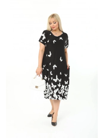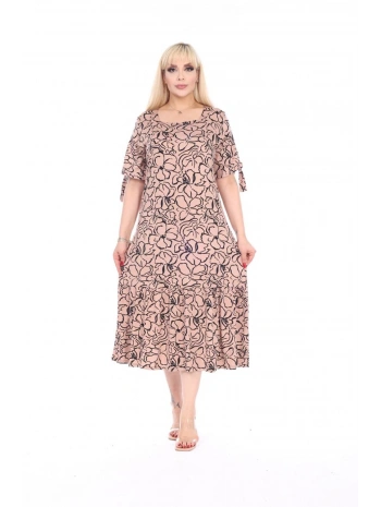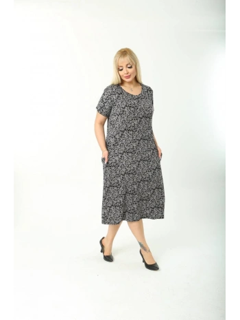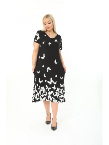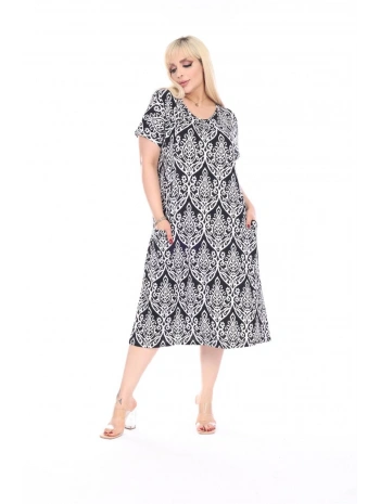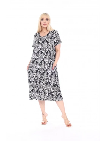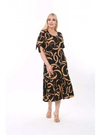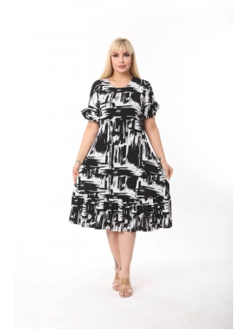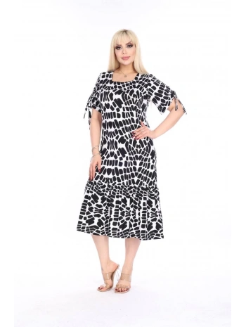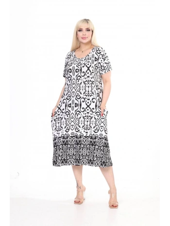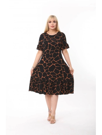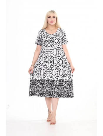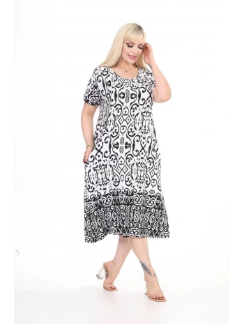 Kadın Büyük Beden Kısa Kollu Midi Boy Desenli Elbise