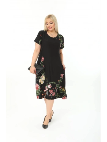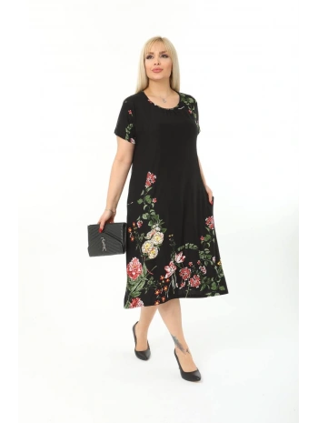 Kadın Siyah Kol ve Etek Ucu Desenli Büyük Beden Elbise
