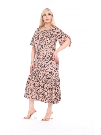 Kadın Büyük Beden Etek Detaylı Viskon Elbise