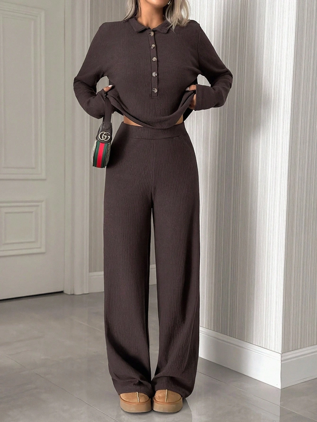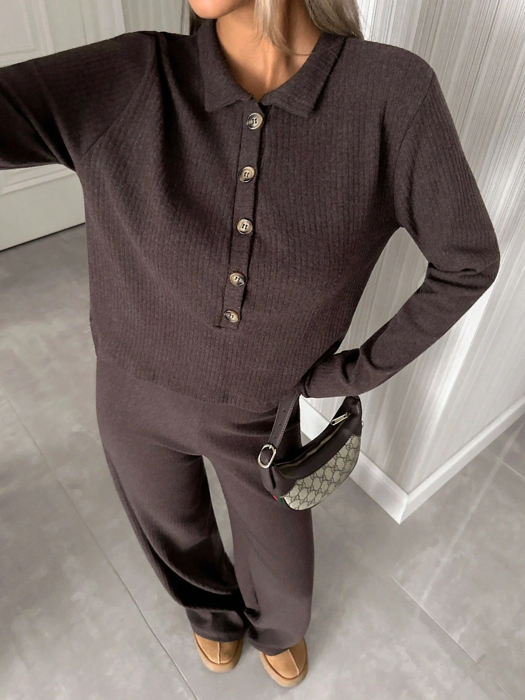 Kadın Uzun Kollu Yaka Düğmeli Yüksek Bel İkili Takım