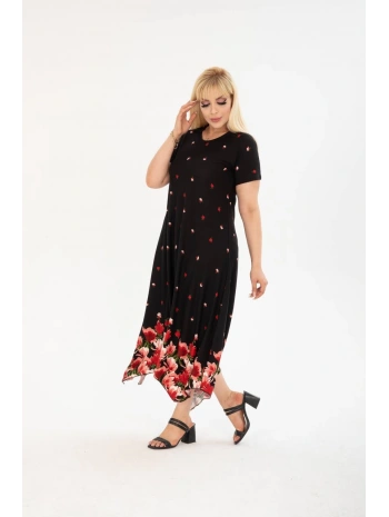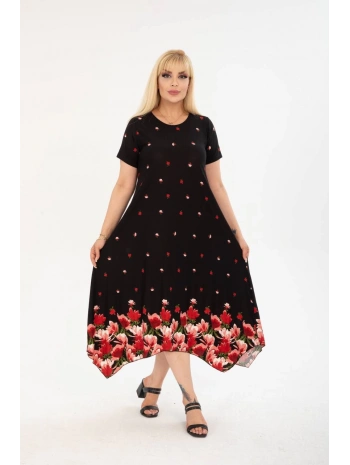Kadın Büyük Beden Kısa Kollu Yırtmaç Detaylı Kaşkorse Elbise
