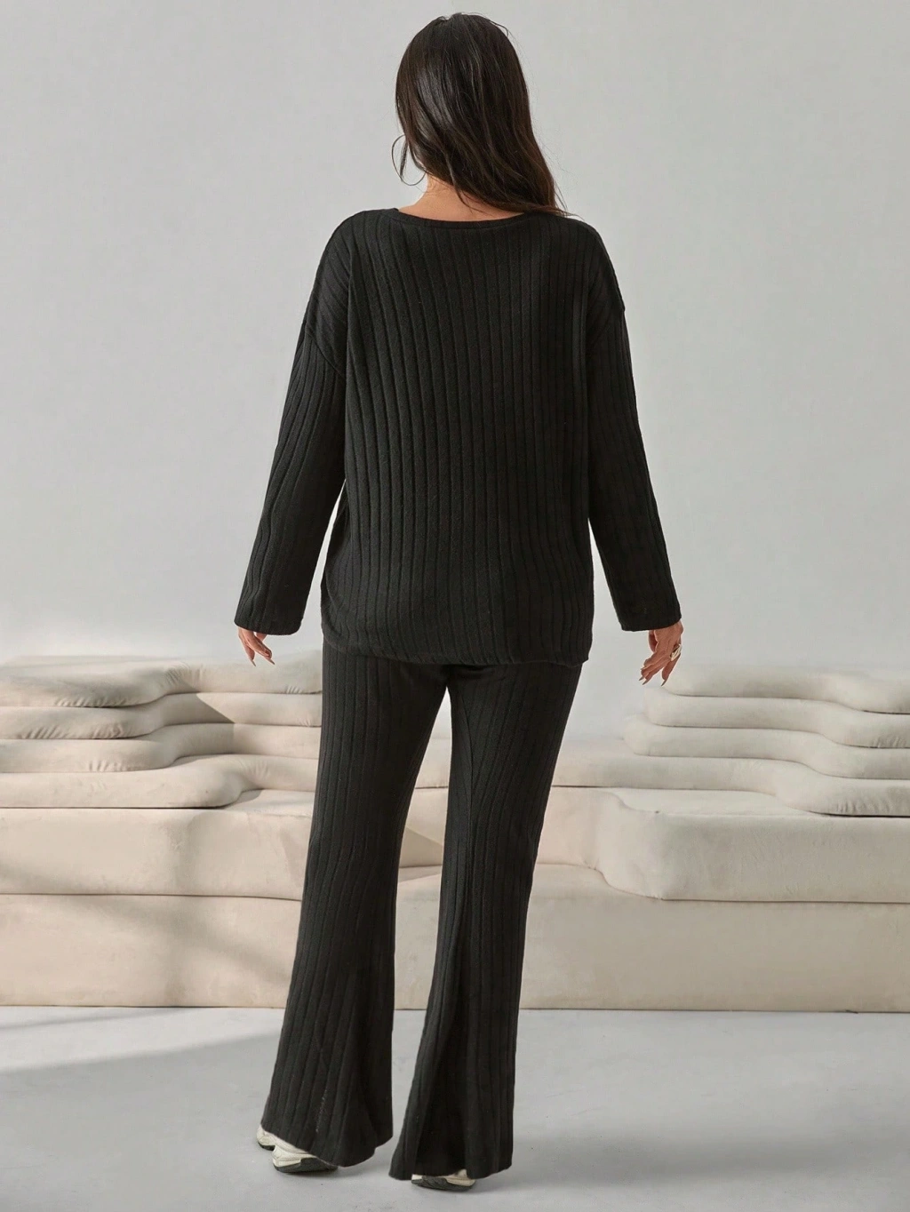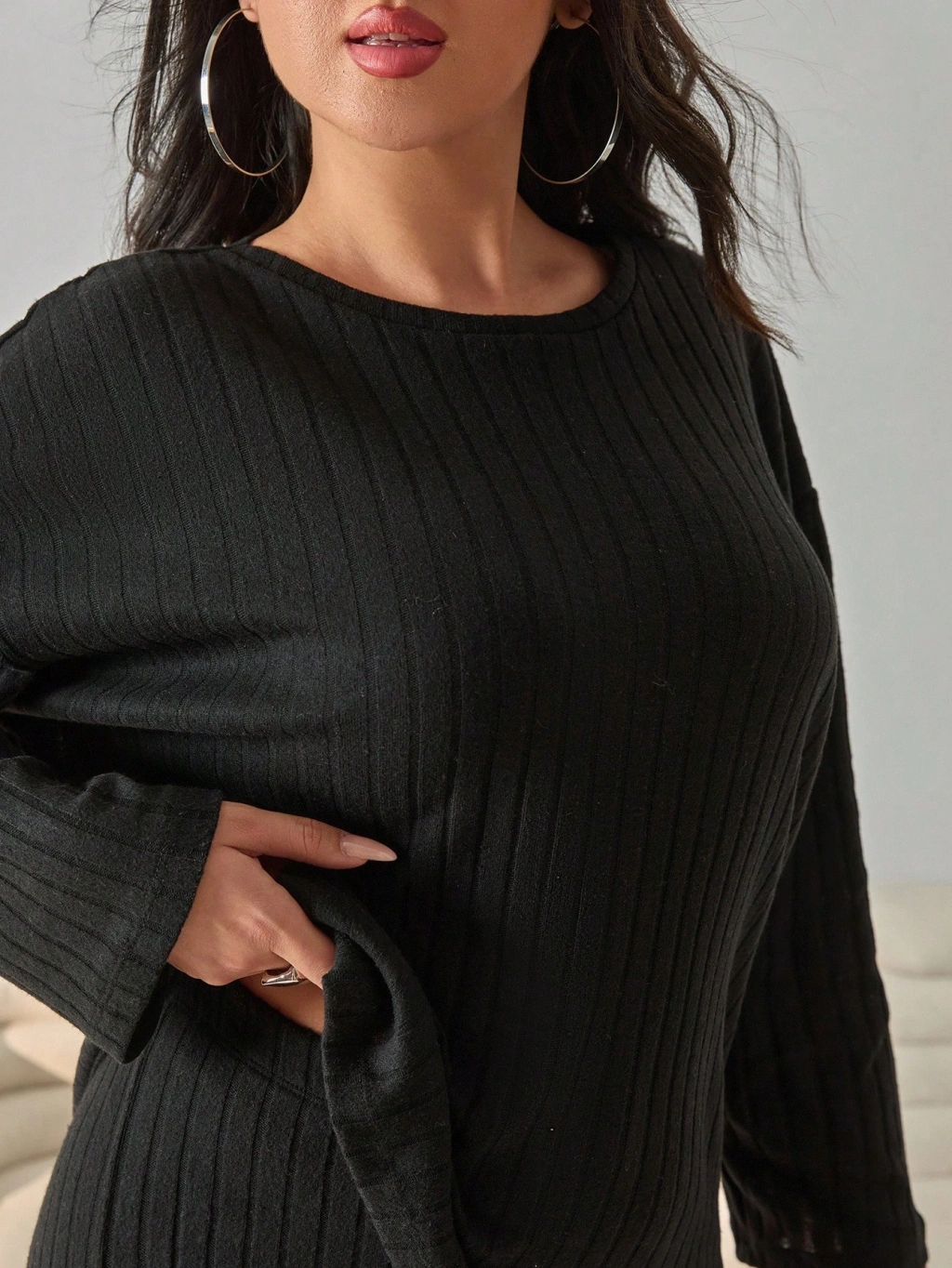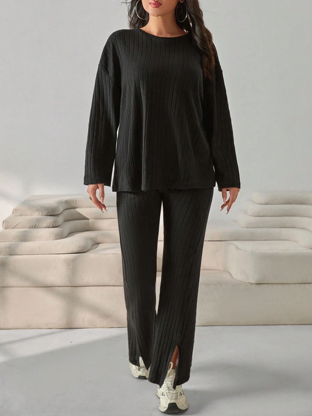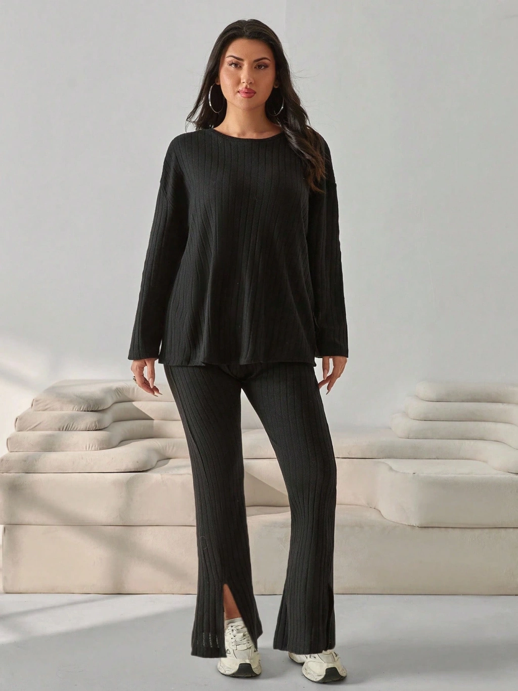 • Kadın Büyük Beden Uzun Kollu Yüksek Bel Bisiklet Yaka Paça Yırtmaçlı Takım