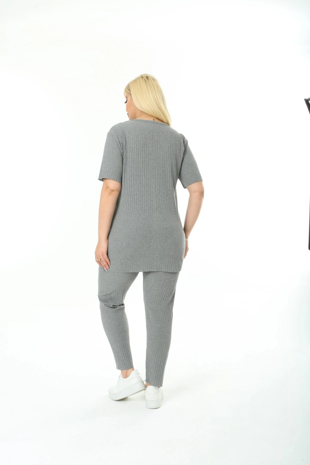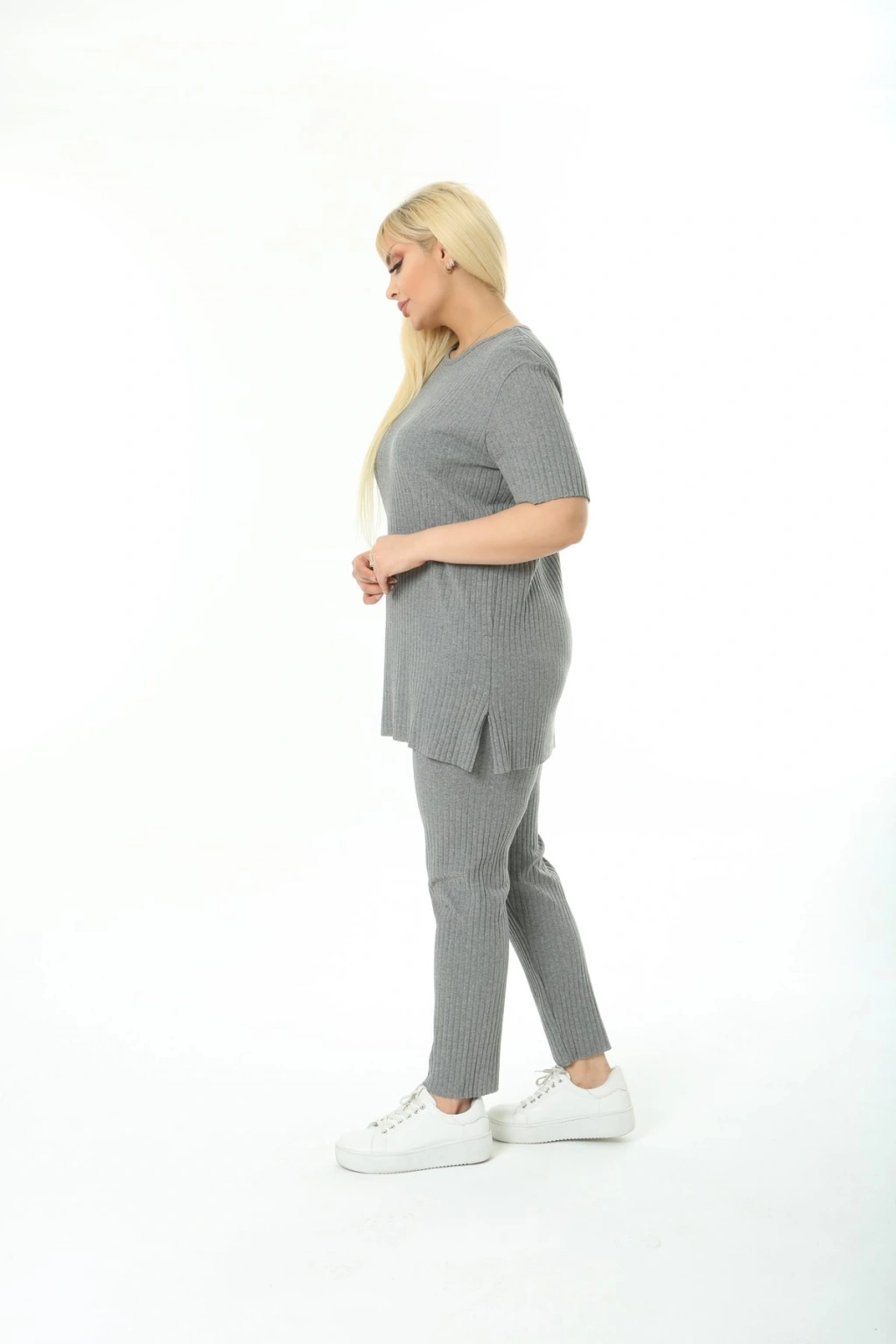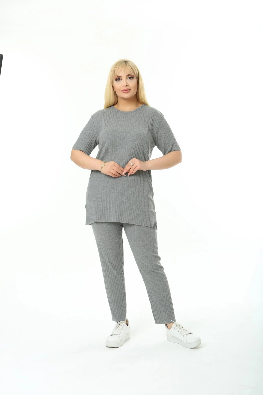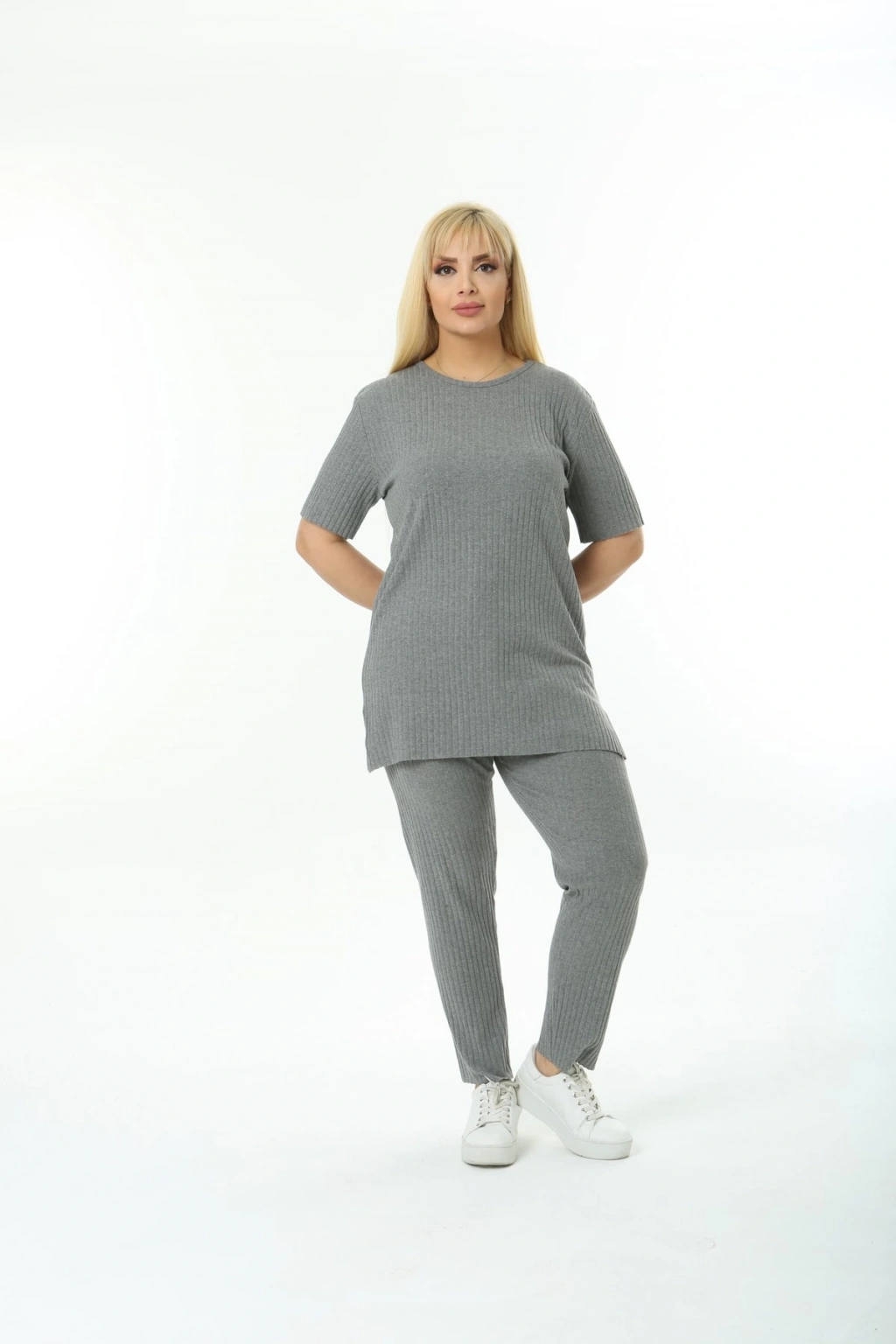 Kadın Kısa Kollu Beli Lastikli Rahat Kalıp Ikili Pamuklu Kaşkorse Takım