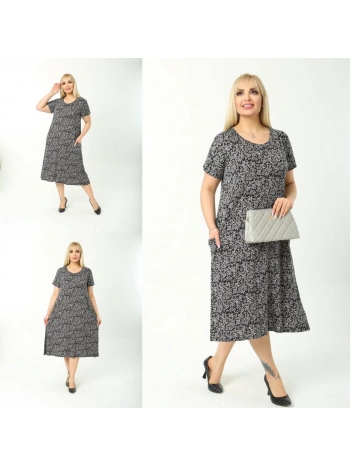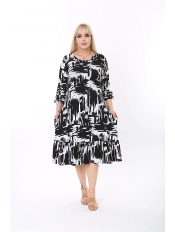 Kadın Büyük Beden Siyah Desenli Kısa Kollu Elbise