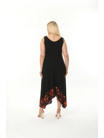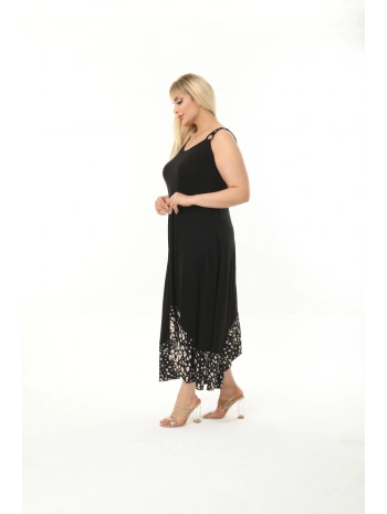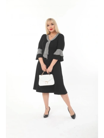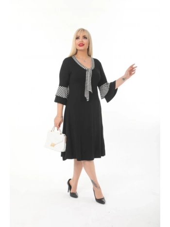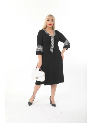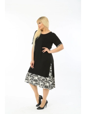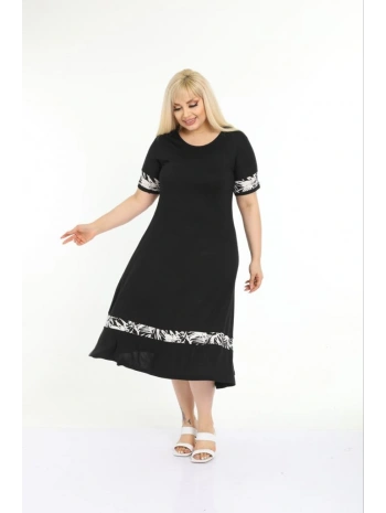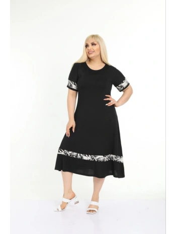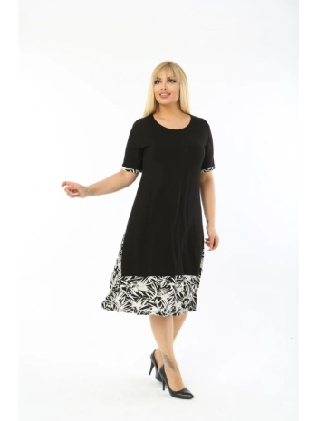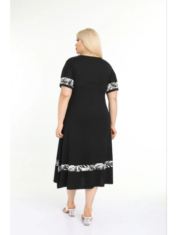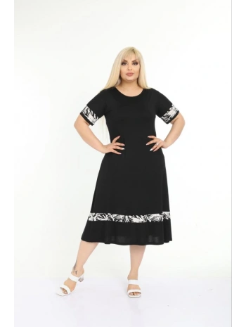 Kadın Siyah Kol ve Etek Ucu Desenli Büyük Beden Elbise