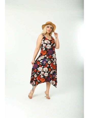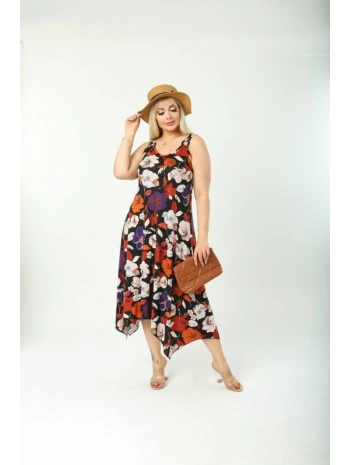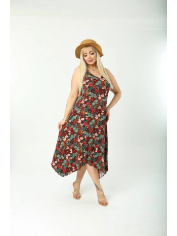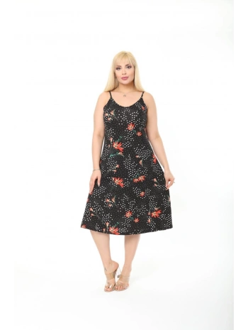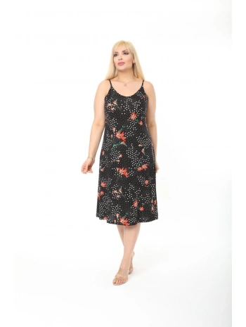 Kadın Büyük Beden Ip Askılı Desenli Midi Boy Elbise