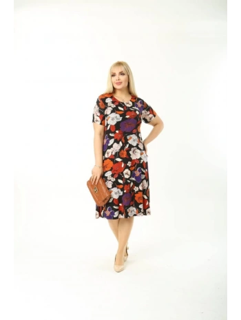 Kadın Büyük Beden Kısa Kollu Midi Boy Çiçek Desenli Elbise