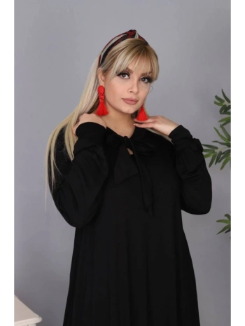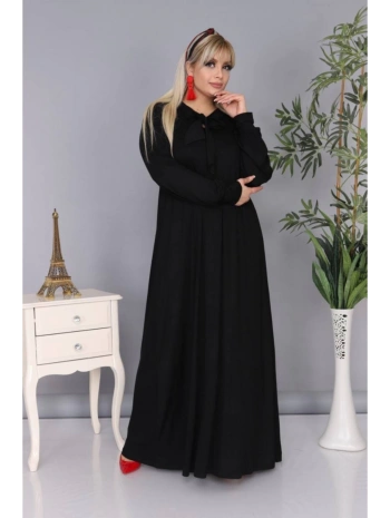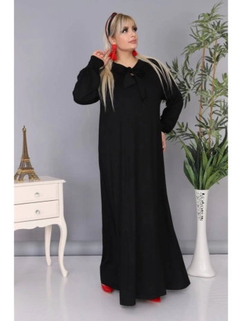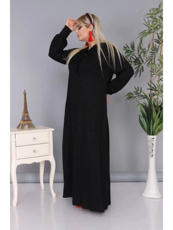 Kadın Büyük Beden Kravatlı Siyah Uzun Elbise