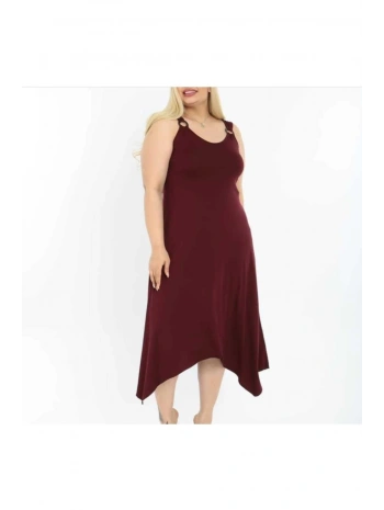 Kadın Büyük Beden Bordo Askılı Elbise