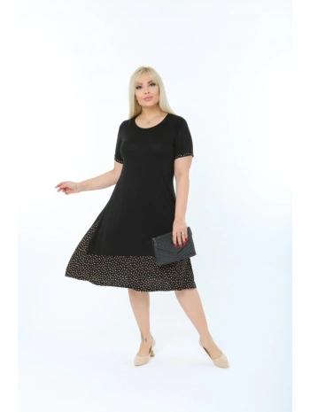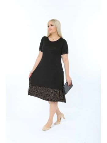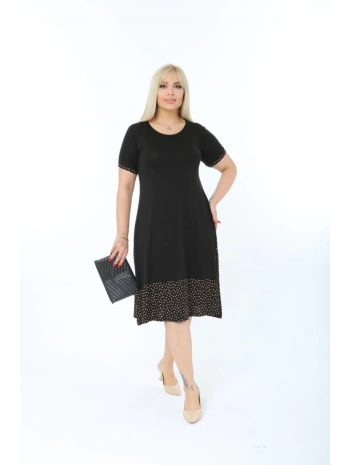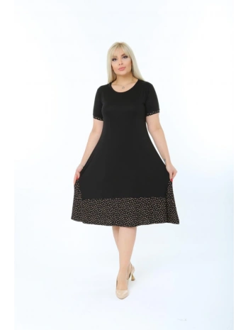 Kadın Siyah Büyük Beden Eteği Puantiyeli Kısa Kol Elbise