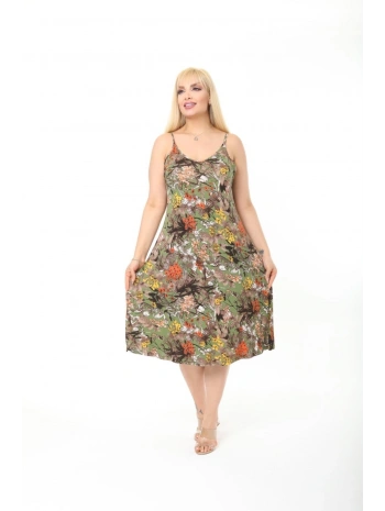 Kadın Büyük Beden Ip Askılı Desenli Midi Boy Elbise