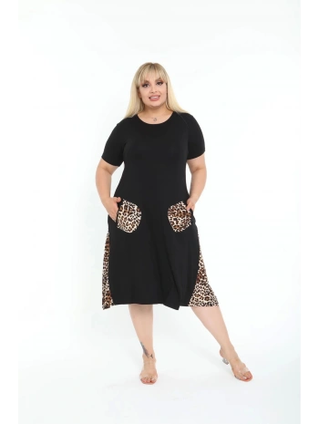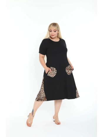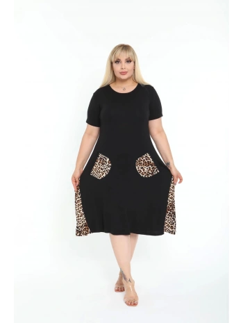 Kadın Siyah Kol ve Etek Ucu Desenli Büyük Beden Elbise