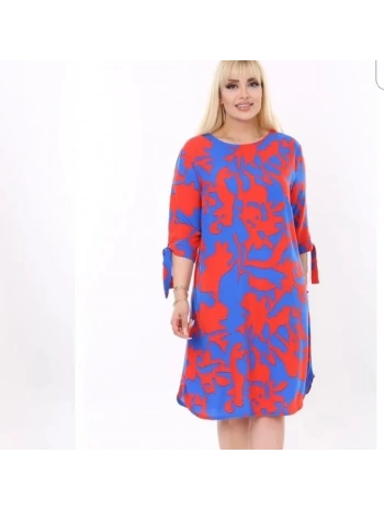Büyük Beden Çiçek Desenli Kısa Kol Elbise