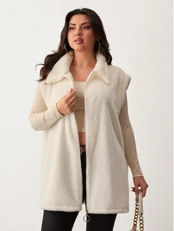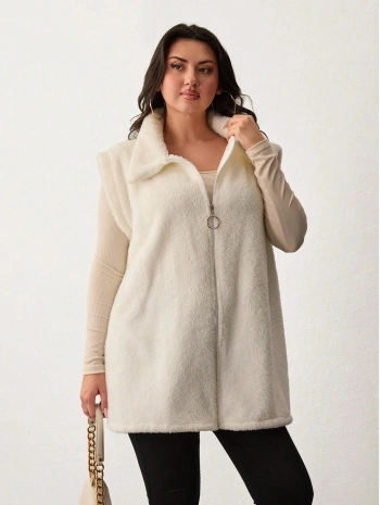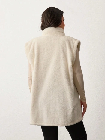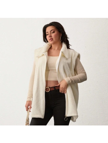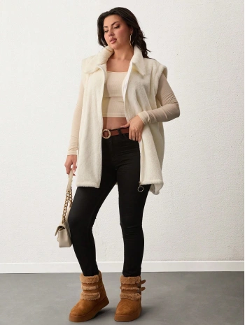 Kadın Büyük Beden Fermuarlı Welsoft Peluş Kolsuz Yelek
